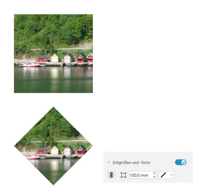 wenn ich aber die Raute mit Eckfunktion mache dann ist das Foto schief