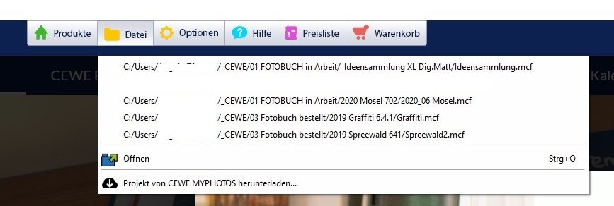 vielen Dank schon mal. Ich habe den Weg, wie von spica beschrieben, gemacht. Ich kann die Datei öffnen, aber die Bilder sind nicht drin. ICh habe noch die Datei alterNAme.mcf, aber dazu keinen mcd-Dateienordner. Mein einziger mcf-Ordner ist NEUERNAME_mcf-Dateien. In dem sind nur die BIlder der ersten Seite enthalten (die die auch im Buch dargestellt werden). Ich habe zwei Versionen von der Software (Problem besteht in beiden Versionen): 1. CEWE FOTOWELT 7.0.2 (x64) 2. dm-Fotowelt 7.0.3 (x64) Mein Betriebssystem ist Windows 10. Ich habe zu keinem Zeitpunkt eine Fehlermeldung erhalten. Ich sehe in meinem Fotobuch nur Rahmen, wo eigentlich Bilder drin sein sollten. Ich habe gerade noch mal überlegt. Ich bin mir nicht sicher, aber es kann sein, dass ich was in den Ordnern, wo die Bilder liegen, verändert habe. Kann das die Ursache sein? Wenn ja, was kann ich tun, um das Problem zu beheben. VIELEN DANK VORAB!