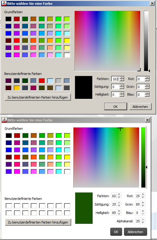 Re: Farben ändern in der Version Müller 5.1.2Ich habs nicht geschafft, 2 oder 3 Ziffern einzutragen. auch mit den Pfeiltasten erreiche ich nur WErte zw. 0 und 9