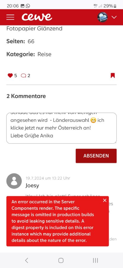 Genauso funktioniert es vielleicht kannst du es mal mit dem Link versuchen, über den ich ins Internet gehe. Ich habe diesen Link jetzt einfach mal kopiert, ob das allerdings auch von Österreich aus klappt, kann ich nicht beurteilen. https://www.cewe-community.com/next?loc ... de%2Cde-CH Den Link habe ich dann in der oberen Zeile fixiert, dann klappt es bei mir. Screenshot (246).png Viel Erfolg! Und wenn es nicht klappt, noch solange Geduld, bis die Urlaubszeit vorbei ist. Liebe Grüße Traumfänger Anika, speichere mal den Link als Lesezeichen in der Symbolleiste. Beim Aufrufen wird dann künftig immer dieser Link geöffnet LG