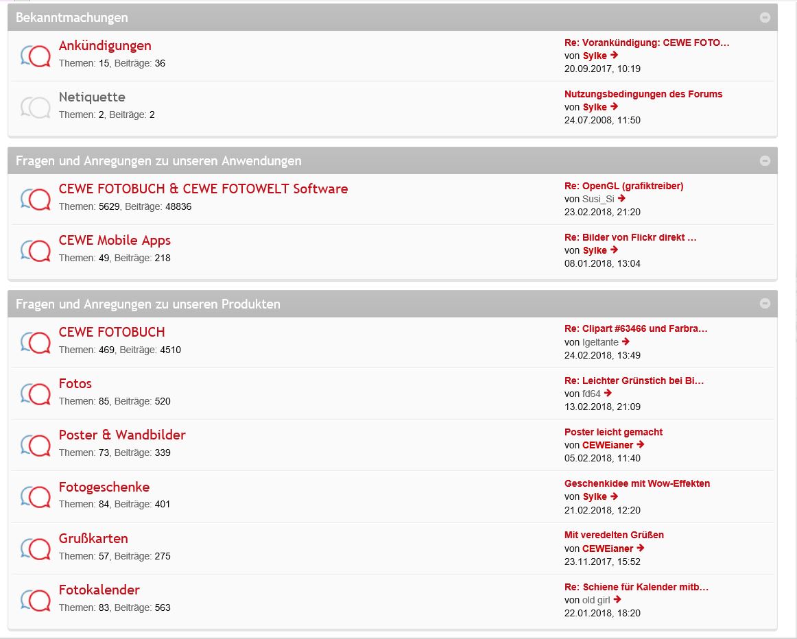 Wir laden Sie herzlich ein, die neue CEWE Community mit integriertem Forum zu entdecken und künftig zu nutzen. Das bisherige Forum, in dem Sie sich gerade befinden, steht nur noch bis Ende 2025 für neue Beiträge zur Verfügung und wird ab dem kommenden Jahr 2026 nur noch lesend zugänglich sein. Informieren und registrieren Sie sich jetzt in der neuen CEWE Community – wir freuen uns auf Sie! Herzliches Willkommen für neue BesucherNach fast 10 Jahren als „anonyme Besucherin“ und Nutznießerin dieses Forums habe ich mich vor ca. einem Jahr erst als Mitglied registriert.
