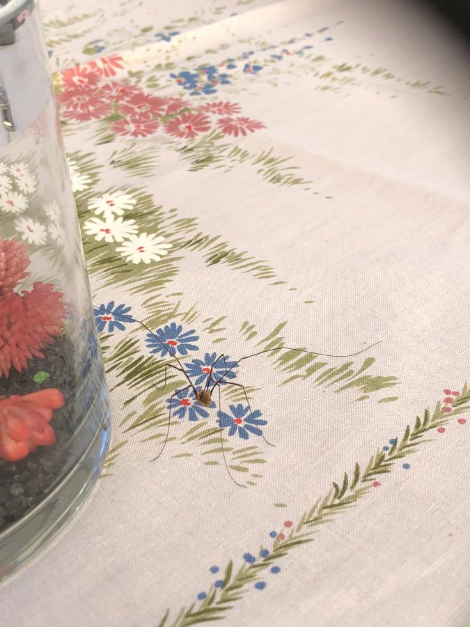 Nici Re: Challenge 08/2020 • HausbesetzerSpiderman hat sich wahrscheinlich mit der Blumen-Deko mit ins Haus geschmuggelt. So auf Gräsern und Blumen fühlt er sich wohl - er hat es wohl nicht bemerkt, dass das nur eine gedruckte Wiese ist.