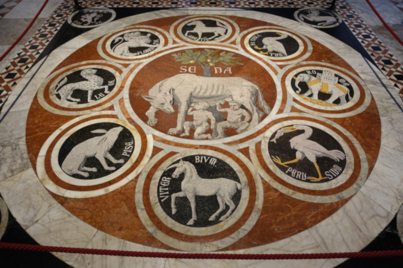 Re: Challenge 01/2020 • Eine runde Sache!Marmorboden im Dom von Siena, der den größten Teil des Jahres aus Schutzgründen abgedeckt ist.