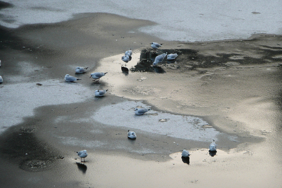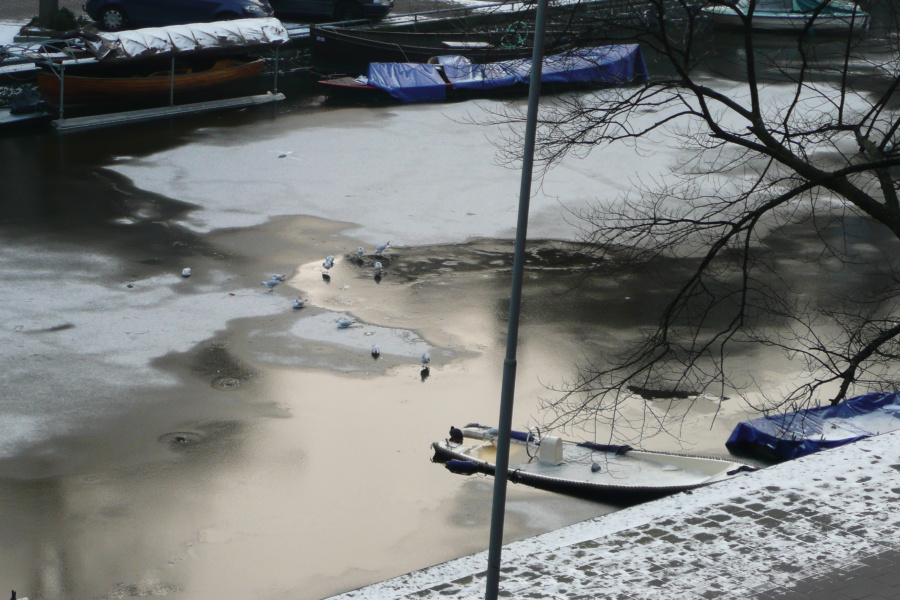 Ich habe auch noch ein älteres Bild gefunden, das ich selbst sehr mag, obwohl es ein sehr unperfektes Foto ist. Die Umgebung: ein zum Teil zugefrorener Kanal in Amsterdam im Februar 2010, auf dem die Möwen "auf dem Wasser" liefen. liebe Grüße