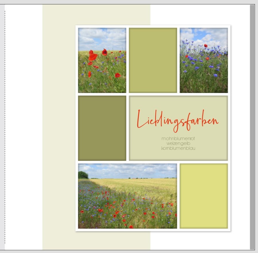 Diese Gestaltung ist eine Variation der Vorlage "Villa Kunterbunt" (#50) aus unserem Vorlagenbuch "Einfach in Szene gesetzt". Die einfarbigen Foto-Flächen habe ich durch Clipart-Farben ersetzt. Deshalb sind aus einigen Dreiecken Vierecke geworden.