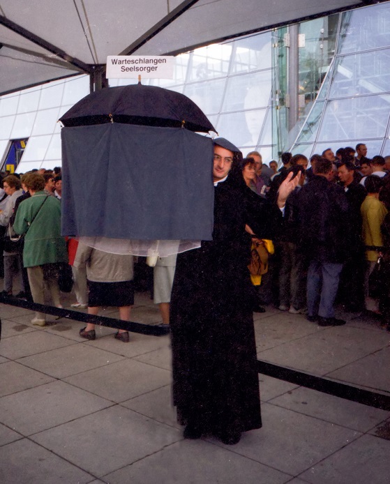 Ob hier der Schirm Teil der Installation oder schlicht Schattenspender war, lässt sich nicht sagen. Liebe Grüße