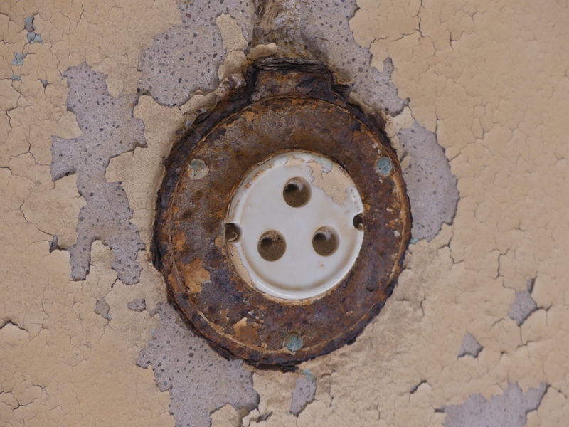 Ein Steckdose, entdeckt in der Geisterstadt Kolmanskuppe in Namibia