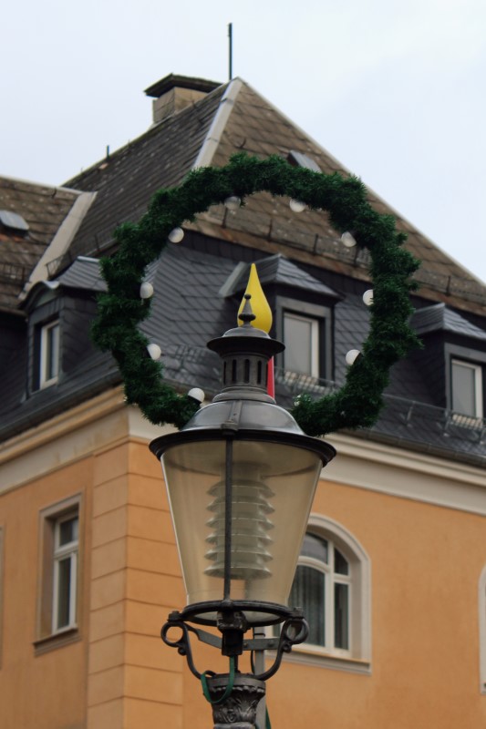Die Straßenlaternen in Reichenbach im Vogtland sind alle (vor Weihnachten) mit einem eigenen