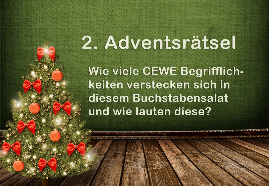 Wir laden Sie herzlich ein, die neue CEWE Community mit integriertem Forum zu entdecken und künftig zu nutzen. Das bisherige Forum, in dem Sie sich gerade befinden, steht nur noch bis Ende 2025 für neue Beiträge zur Verfügung und wird ab dem kommenden Jahr 2026 nur noch lesend zugänglich sein. Informieren und registrieren Sie sich jetzt in der neuen CEWE Community – wir freuen uns auf Sie! Rätsel 2014: Advent, Advent das zweite Lichtlein brennt.