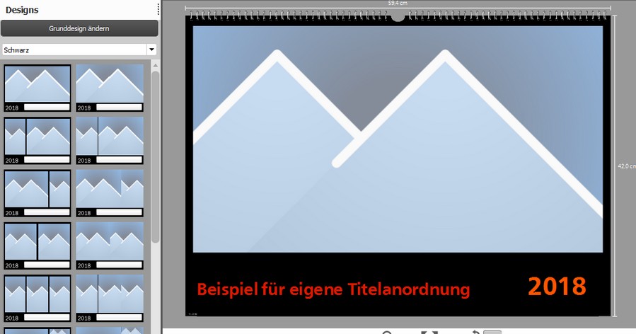 Bei Designkalendern muss hat man nur die Möglichkeit, eine andere Designvorlage zu wählen, die möglicherweise auch eine andere Positionierung auf dem Titelblatt beeinhaltet.