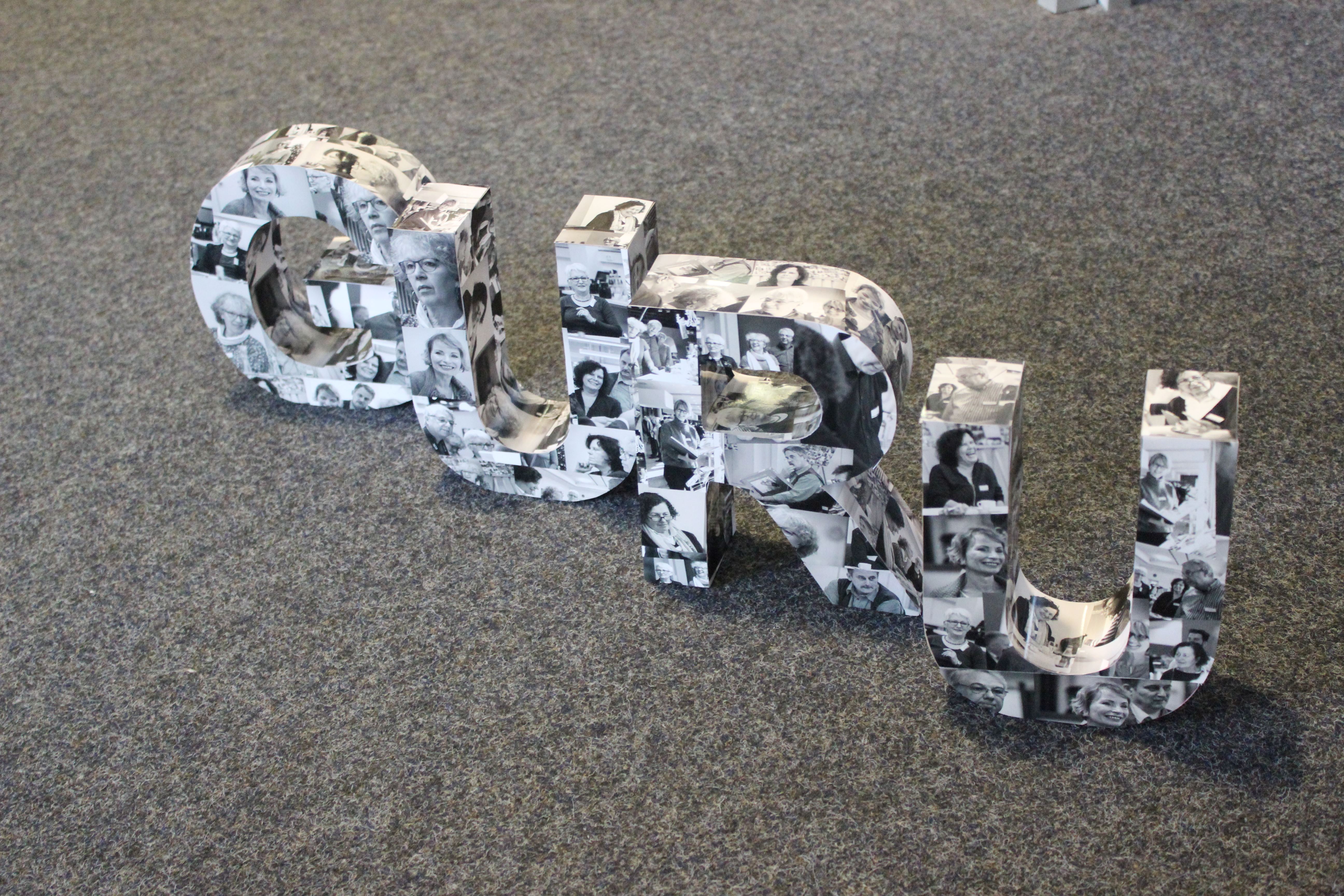 Wir haben uns dafür entschieden, die Buchstaben mit Fotos zu bekleben. Damit Sie nicht Ihre schönen alten Fotos verarbeiten brauchen, sind wir so vorgegangen, dass wir uns vorab eine Collage aus ausgewählten Fotos mit einem Bildbearbeitungsprogramm (s/w) erstellt und die wir dann im Format 15 x 20 cm am CEWE SOFORTDRUCKER ausgedruckt haben. Je nachdem, wie viele Buchstaben Sie bekleben möchten, sollten Sie sich vorab Gedanken machen, wie viele Ausdrucke im Format 15 x 20 cm am Sofortdrucker dafür in etwa nötig sind. Für unseren Begriff "GURU", haben wir zur Sicherheit 10 Fotos ausdrucken lassen. Dies entspricht in etwa auch der Größe - also der Höhe und Breite - der einzelnen Buchstaben. Die Buchstaben selbst brauchen Sie nicht zu basteln. Die bekommen Sie bereits im Handel, in Geschäften, die entsprechende Gestaltungsartikel führen. Was Sie zum Basteln benötigen sind: 1. eine Schere oder einen Cutter 2. Klebstoff (Leim, doppelseitiges Klebeband etc.) 3. Ausgedruckte Fotocollagen auf Fotopapier Der Ablauf im Einzelnen: