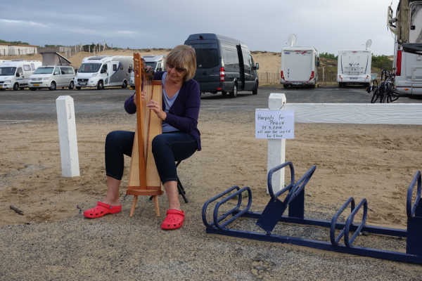 Re: Challenge 02/2018 • Sitzen gelassen!Auf einem Wohnmobilplatz an der französischen Atlantikküste eine Stunde lang für den Weltfrieden zu spielen und dabei auf einem solchen Höckerchen zu sitzen ... dem Weltfrieden war es bedauerlicherweise offenbar