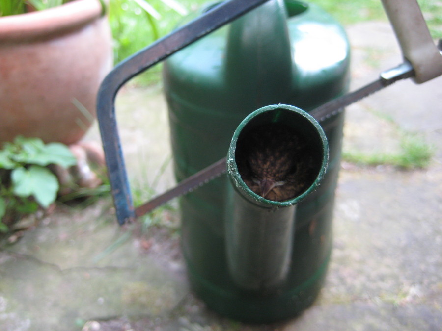 Silber-Distel Challenge 07/2018 • Oops!Oops ... der kleine Vogel überstand die Rettungsaktion unversehrt, die Gießkanne nicht.