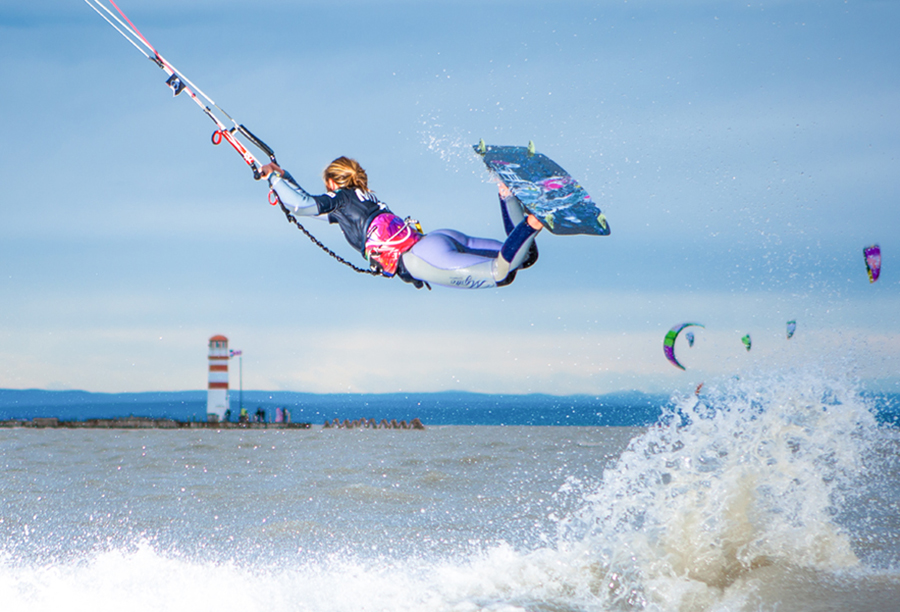 Wassersport im stürmischen Podersdorf am Neusiedlersee