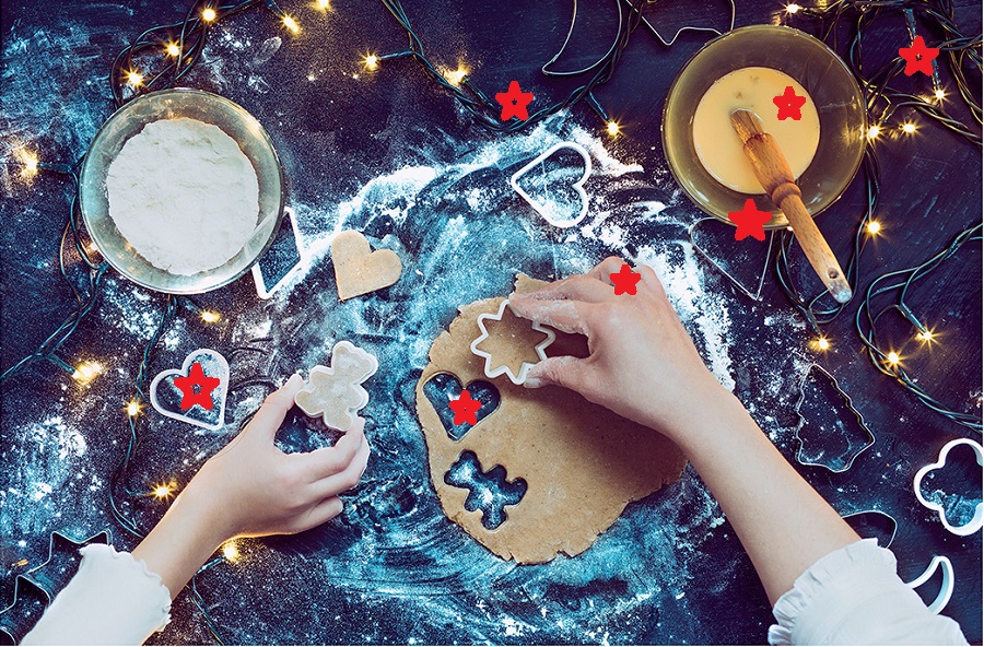 1. die Ringfarbe gold/silber 2. der fehlende dunkle Punkt im rechten Schälchen 3. ein fehlender Lichtstern in der oberen rechten Ecke 4. ein fehlendes Mehlhäufchen etwa in der Mitte oben 5. ein fehlendes Ausstecher-Herz links neben der linken Hand 6. ein fehlendes Mehlhäufchen im ausgestochenen Herzchen 7. andere Lage des Herzausstechers beim rechten Schälchen (über dem Schälchenrand) - dazu habe ich am längsten gebraucht. Liebe Grüße