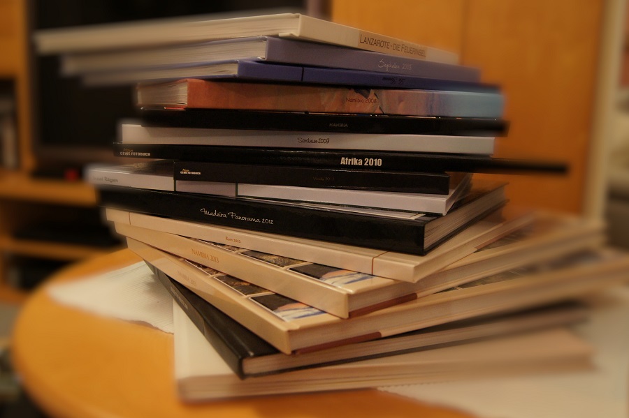 Re: 20. Dezember | Kategorie: FotografieHier habe ich mal einen Stapel einiger meiner Fotobücher fotografiert: