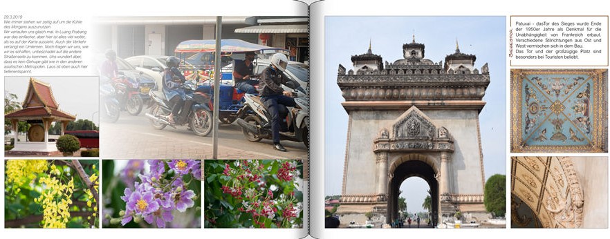 Die Idee mit dem teilen des Fotos ist klasse. Mich hat der Pfahl auch immer gestört, aber irgendwas stand immer im Bild oder es war unscharf. Verkehr zu fotografieren ist nicht immer leicht, wenn man auch noch um seine Sicherheit besorgt ist ;-) Ich habe es nun auf 2 Bilder aufgeteilt, die beiden oberen Bilder symetrisch re und li angebracht und den Text in die Mitte. Sieht jetzt besser aus. Manchmal ist man einfach betriebsblind. Gut dass es euch gibt @Spica50: Die Details vom Siegestor kommen dann auf der nächsten Seite, sie sind nicht verloren. Das wird dann eine sehr pastellige, helle Seite, da passen die Bilder gut. Jetzt muss ich nochmal schauen, dass alle Ausrichtungen und Abstände stimmen - das hasse ich Einen schönen Sonntag noch Monika