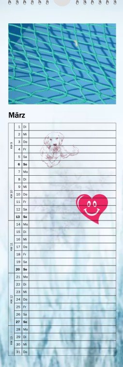 vielen Dank für die schnelle Antwort. Den Trick mit der erhöhten Transparenz habe ich bereits versucht. Da ich jedoch Hintergründe gewählt habe (oben beispielsweise die Blumenwiese) wird das gesamte Kalendarium dahinter transparent und die Cliparts fügen sich in den Hintergrund ein. Dann wird es sehr unübersichtlich. Dann schließe ich daraus, dass ich entweder alles im Browser neu machen muss, wobei ich hier Schwierigkeiten habe, die Fotos richtig einzufügen und zu bearbeiten, oder aber auf Cliparts verzichte. Das muss ich mir nochmal überlegen