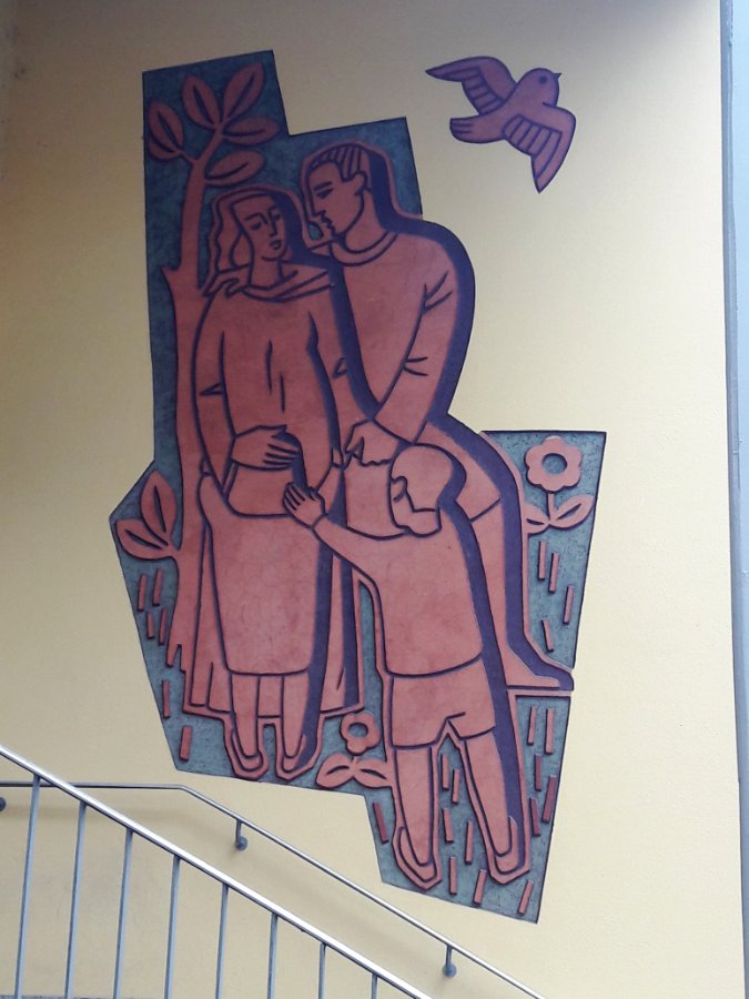 Für dieses Motiv musste ich ins Archiv greifen: Das Gebäude wurde 2020 abgerissen. Es war Teil des Nürnberger Nordklinikums, die Darstellung einer Familie stammte wohl aus den späten 20er Jahren.