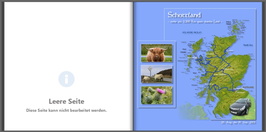Bei der Seite 1 schließe ich mich @Zaubermaus an. Bei dem Text würde ich den Schatten entfernen und auf jeden Fall auch bei der Landkarte (Umriss Schottland). Die kleinen Ortsbezeichnungen lassen sich durch den Schatten sehr schwer lesen.