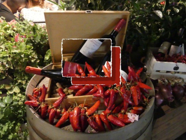 ich kann mal beschreiben, wie ich es gemacht habe, wahrscheinlich ist das aber nicht der einzige Weg zum Ziel: 1) Man nimmt ein Bild, legt es einmal gross und zwei mal klein (gleiche Grösse) auf das Blatt. 2) Man versieht beide kleinen Bilder mit einem Rahmen (Nr. 112021), eines davon noch mit einem Schatten, das andere malt man in einer beliebigen Farbe an. 3) Man zieht das kleine Bild auf einen beliebigen Platz auf das grosse Bild und zoomt den Bildausschnitt mit dem Mausrad so weit heraus, dass das kleine Bild aussieht wie aus dem grossen ausgerissen (das erfordert ein bisschen Fingerspitzengefühl und Übung). 4) Man legt das kleine einfarbige Bild exakt unter das andere und zieht dieses dann etwas weg, so dass der Schatten passt. Voilá, fertig! Deiner Fantasie sind da keine Grenzen gesetzt, Du kannst mit anderen Rahmen und Formen experimentieren, "dahinter" kann ein ganz anderes Bild hervorspitzen, ... Viele Grüsse