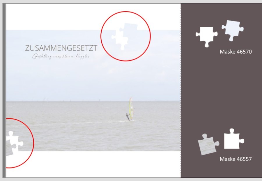 Re: Designpiraten - Zusammengesetzt (09/2021)Die zwei "Aussparungen" (fehlenden Teile) sind weiße Kopien der Foto-Puzzleteile, die ich jeweils auf das große Foto gelegt und an den Rändern ausgerichtet habe.