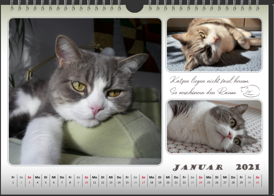 Auch ich gestalte für meine Mama jedes Jahr einen - was das Layout betrifft - relativ simplen Kalender mit im vorhergehenden Jahr selbst geschossenen Bildern. Dabei sollen die, tendenziell wenigen Bilder, für sich sprechen.