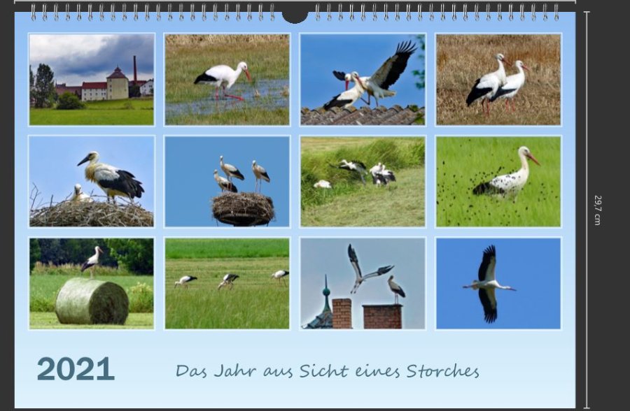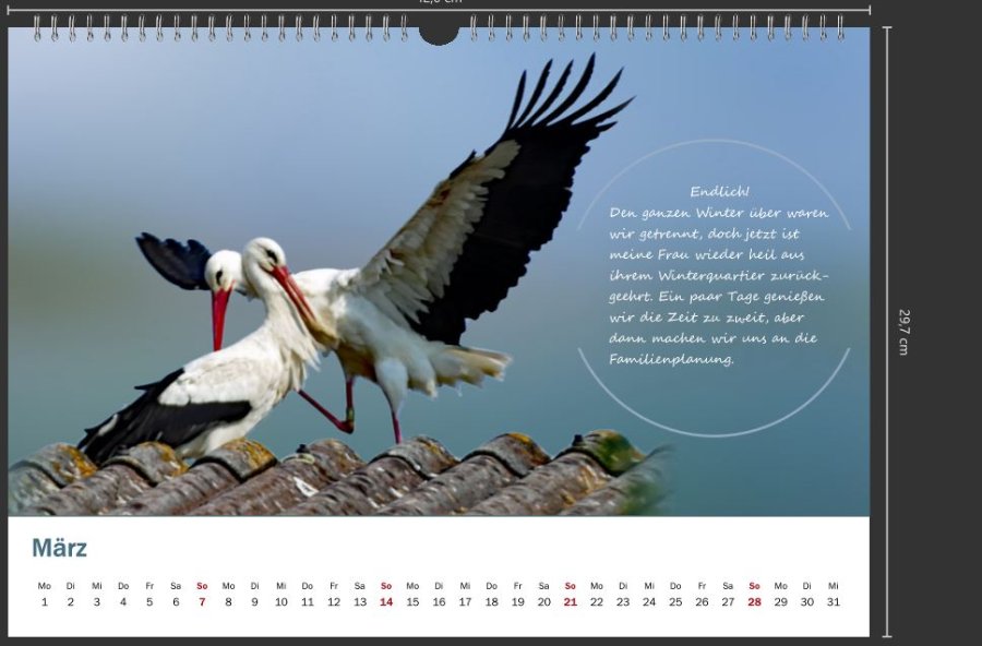 Ein Kalender, bei dem ein Weißstorch aus seinem Leben erzählt