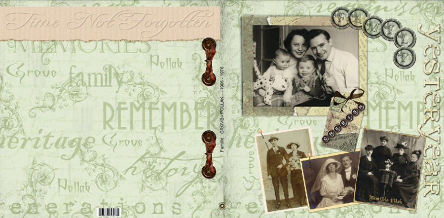 Für dieses Familienprojekt habe ich Fotos, Dias und Negative aus den Jahren 1905 bis 1976 eingesannt. Den Family-tree bis zurück ins Jahr 1630 hat mein Vater über etliche Jahre recherchiert. Re: Kreative TitelgestaltungSehr schön für ein solches Buch!
