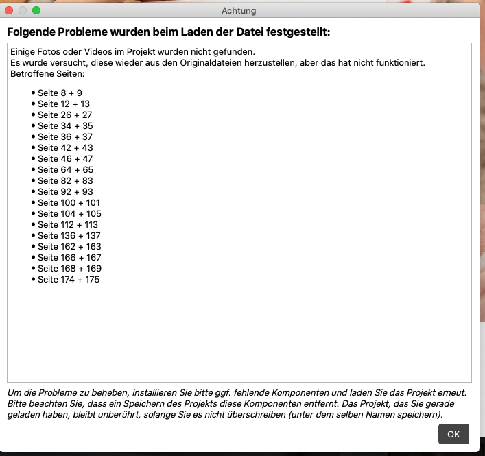 du hast das Querformat da müssten es 598 Dateien sein. Aber trotzdem hast du immer noch zu wenig Was mit auffällt ist, dass der Name des mcf-Ordners hinten - im Vergleich zum Originalnamen - noch eine "-2" dran hat. Wie bist du dazu gekommen? Nur um sicher zu gehen: Das funktoniert nur, wenn du das heruntergeladene und entpackte Buch in der Cewe-Software mit dem Originalnamen öffnest und dann unter "Datei > Speichern unter" mit einem anderen Namen abspeicherst. Ein Ändern der Datei- und Ordnernamen im Dateisystem geht schief. Liebe Grüße phili