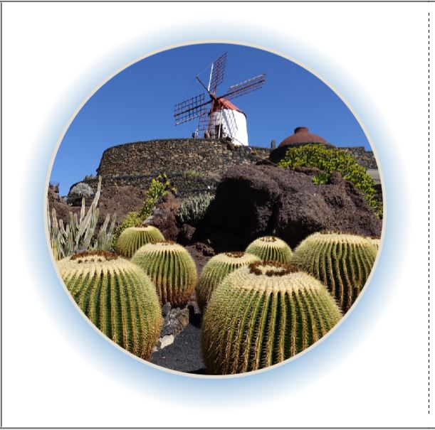 Um die Bilder mehr vom Hintergrund abzusetzen, habe ich ein weiteres Foto in einer runden Maske als Rahmen hinter die Fotos gelegt.