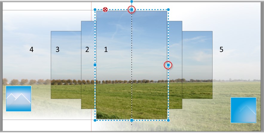 ich schätze, dass die Gestaltung nicht mit Cliparts gemacht ist, sondern mit fünf übereinander liegenden gleichen Fotos. Dazu musst du zuerst dein Bild komplett auf die Doppelseite legen, bis über den Rand ziehen und mit Hilfe der magnetischen Fanglinien einrasten lassen. Dann kopierst du dieses Bild und fügst es 4 Mal ein. Nun markierst du von außerhalb der Seite mit der Gummibandmethode alle 5 Bilder und bringst sie mit der Tastenkombination Alt+HV passgenau übereinander. HV bedeutet Horizontal zentrieren und Vertikal zentrieren. Wenn das Display "Zu nah am Rand" erscheint, klickst du auf "Verschieben" (mehrmals). Jetzt beginnst du, die Größe der Fotos zu ändern. Das machst du nur mit den mittleren Anfassern oben und unten, nicht mit den auf den Ecken. Dadurch bleibt die Zoomfaktor nämlich erhalten. Wenn du die Tastenkombination Strg+Alt gleichzeitig gedrückt hälst, wird das Foto symmetrisch verkleinert und die Ausrichtung bleibt erhalten. Das machst du mit den drei oberen Fotos. Zur Vereinfachung kannst du den Fotos vorübergehend einen Farbrand geben, dann kannst du die Änderungen besser erkennen. Die beiden unteren belegst du mit unterschiedlichen Masken und gibst ihnen eine Transparenz. Ich habe auch noch etwas die Größe geändert, dann muss aber ggf. der Bildinhalt noch passend ausgerichtet werden. liebe Grüße