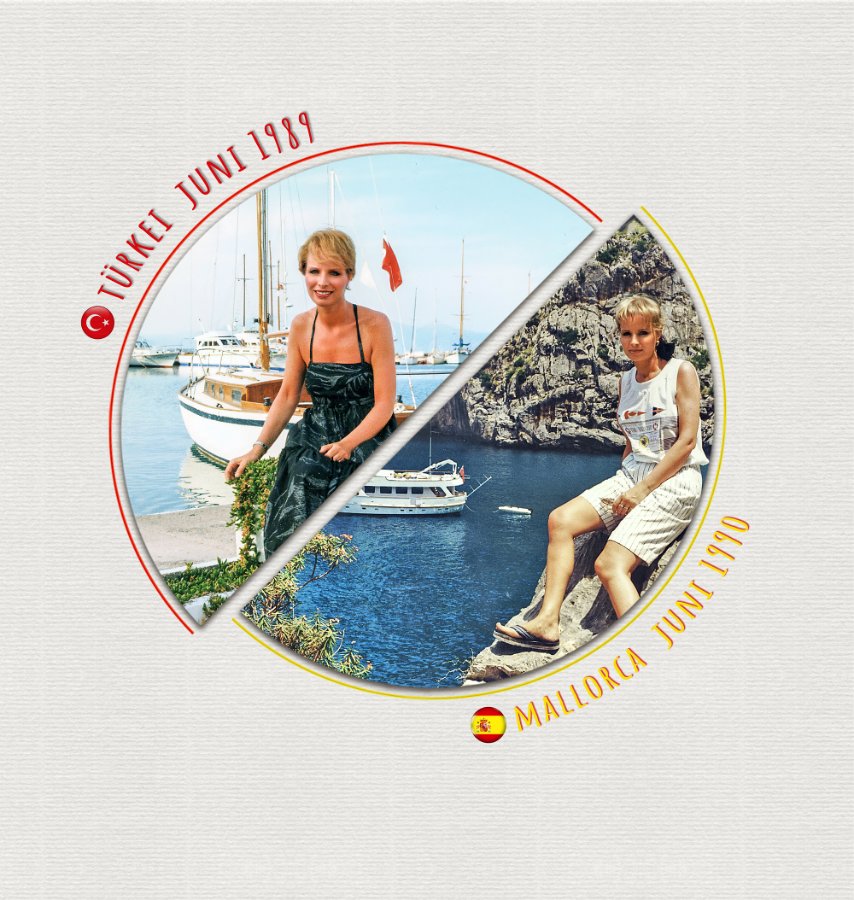 Das Cover habe ich vor vielen Jahren mit einem externen Programm gestaltet, weiß aber nicht mehr welches. Bei CEWE besteht das Problem darin, dass man ein Foto innerhalb eines Rahmens nur um 90° drehen kann. Für dieses Layout bräuchtest du jedoch eine Drehung um 45°. Eigentlich wäre es für CEWE sicher kein großer Aufwand, diese Funktion zu integrieren. Als Workaround bietet es sich an, das Bild vorab extern oder in der Fotoschau um 45° zu drehen und anschließend so abzuspeichern. Dafür solltest du allerdings auf eine größere Variante des Fotos zurückgreifen, auf der das Motiv möglichst mittig und nicht zu groß ist – da musst du etwas ausprobieren. Probiere es einfach mal aus!Wäre lieb von dir wenn du mir das verraten würdest! Re: Coverideen gesucht! 1 Reise - 2 Städte in 2 LändernWeltenbummlerin2024 hat geschrieben: