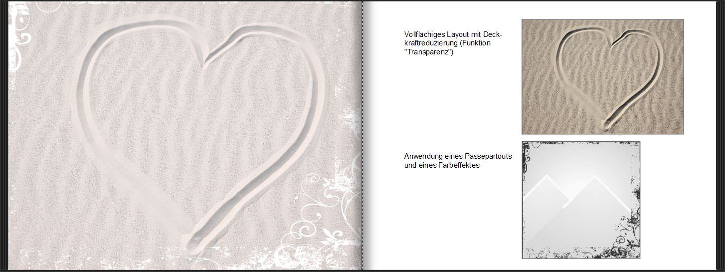 Tipp: Spielen Sie mit der Transparenz, wenden Sie ruhig auch unterschiedliche Bildeffekte auf Ihre Bilder an oder ergänzen Sie die Gestaltung mit einem Passepartout.