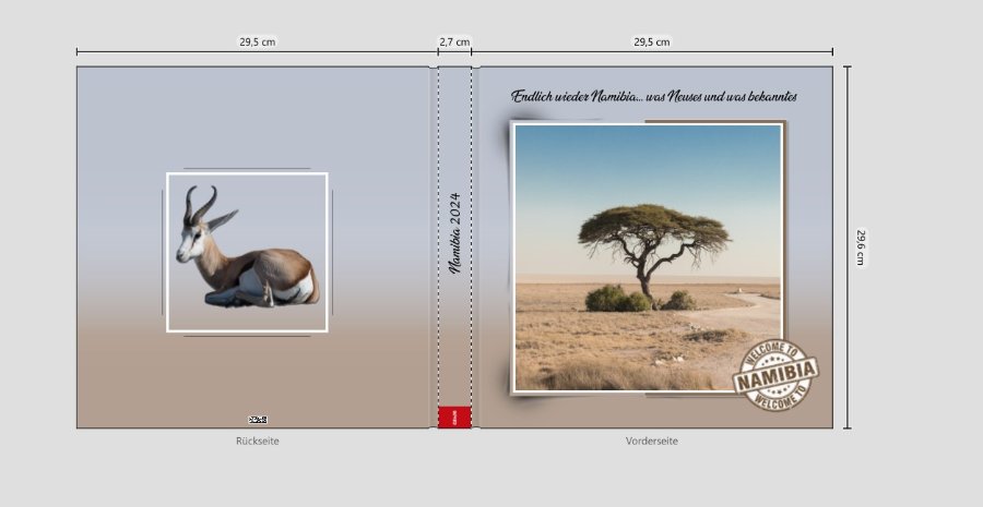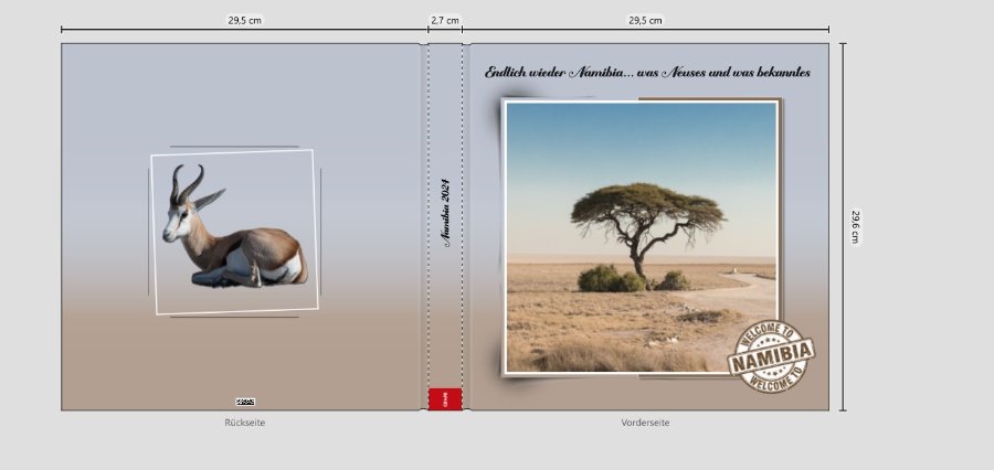 Ich schließe mich an, auch ich finde den Text für das Cover zu lange. Nur "Namibia" oder maximal "Endlich wieder Namibia". Dabei würde ich aber das Namibia dann dominanter gestalten.
