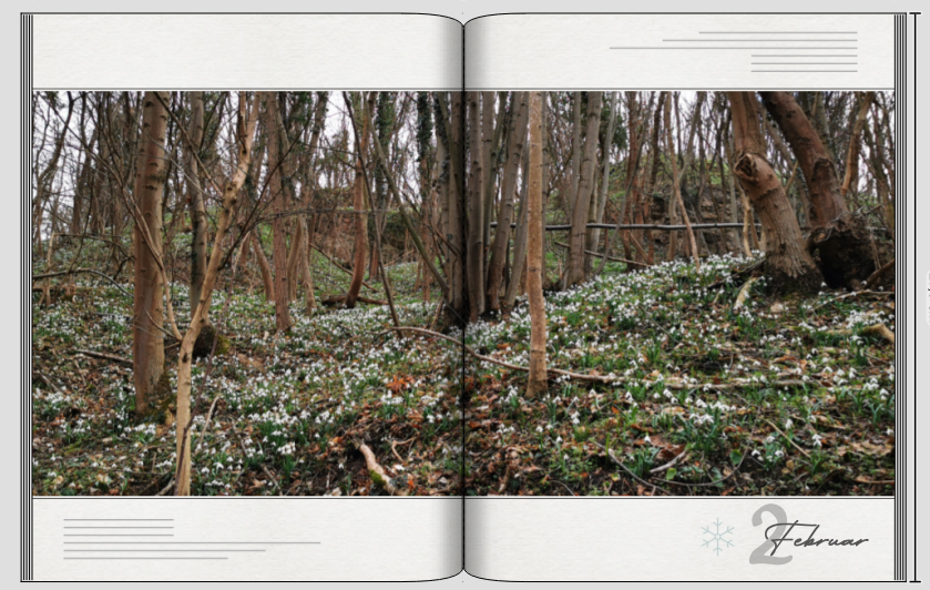 Die anderen Seiten - jedes Monat beginnt mit einem großen Waldbild zu dieser Jahreszeit.