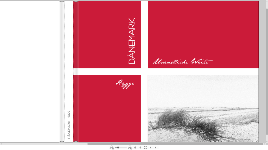 jetzt gebe ich auch noch mal meinen "Senf" dazu. Die Idee mit den Konturen finde ich sehr schön. Mir gefällt das Bild mit den Gräsern besonders gut, allerdings sieht es für mich so aus, als ob der Horizont nicht ganz gerade ist. Das solltest du noch einmal kontrollieren. Spicas Vorschlag, dem Bild keinen roten, sondern einen dezenten grauen Rahmen zu geben, kann ich nur unterstützen. Eine vertikale Ausrichtung von Überschriften gefällt mir auch nicht so gut. Da stimme ich mit narzisse überein. Vielleicht versuchst du auch mal, DÄNEMARK über die "unendliche Weite" zu setzen. Das obere linke Feld ganz frei zu lassen, hat auch für mich einen gewissen Charme. Weiterhin viel Spaß beim gestalten! Lieber Gruß Traumfänger Re: Eure Meinung zu Titel / KapiteleinleitungAch was habe ich hin und her geschoben und mit euren Anregungen gespielt. Der graue Rand ums Bild ist eindeutig schöner als mein ursprünglich roter. Mit der Schriftanordnung bin ich immer noch unsicher. Traumfängers und Narzisses Einwand zum vertikal ausgerichteten Dänemark hat mich doch ins Grübeln gebracht. Freies rotes Quadrat hat was und eigentlich geht's ja auch ums Weite also horizontale. War mir vorher nicht so aufgefallen.