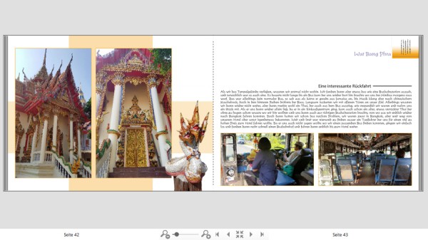 Auf Seite 43 würde ich den Text auf zwei Spalten aufteilen. Ansonsten finde ich die Seiten mit den Text sehr schön gelungen. Re: Unstimmige Seite - Thailand FBTraumfänger hat geschrieben: