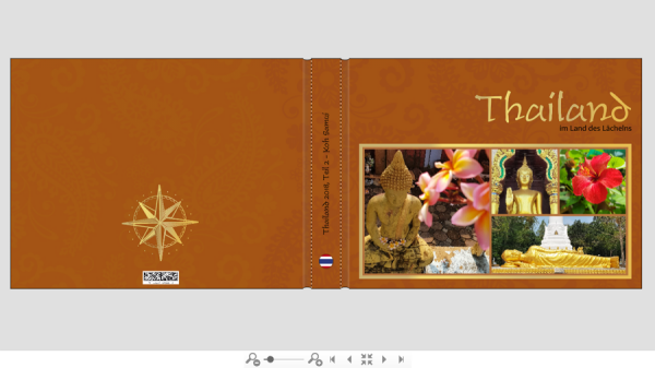 Ich habe mir den alten Beitrag herausgesucht, in dem Du das Deckblatt bereits vor der Reise gestaltet hast. Nun hast Du also die Auswahl der eigenen Fotos getroffen.Ich habe nach dem Unterschied der beiden Koh-Samui-Varianten gesucht und nur schwer auf dem Screenshot gefunden. Ist es einzig die Tiefenschärfe des linken Bildes? Da fällt mir eine Entscheidung schwer. Ich würde versuchen - wie wir es in der Ursprungsversion überlegt hatten -, ruhigere und farblich goldene(re) bis gelb-rötliche Fotos auszuwählen. Das Variantenfoto empfinde ich sehr unruhig - es sieht aus wie drei einzelne. Die rot-grüne Blüte passt nicht in die Farbharmonie. Die abgeschnittene Stupa empfinde ich als unglücklich ebenso wie der Schnitt durch den Kopf der goldenen Figur im Thailand-Buch. Bei dem Buch ist Dir die Farbharmonie ausgesprochen gut gelungen! Rotuma hat geschrieben: laß doch einfach Teil 1 und Teil 2 weg. Ein Buch zeigt Bangkok, das andere Ko Samui.
