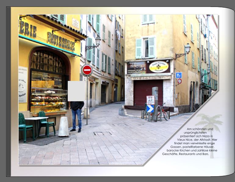 Urlaubsfan Re: Cover und Seite 1Ich hab mal beispielhaft die Seite 28-29 in blau geändert. Ich hatte bisher schon wenige blaue Seiten (Pool, Meer), einige grüne (Landschaft) und alle Stadtseiten hab ich in dem Braun. Ansonsten durchgängiges Konzept mit den Linien und Rahmen.