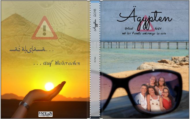 willkommen im Forum! Ich habe mal ein bisschen mit Deiner Vorlage gespielt und möchte Dir diesen Vorschlag machen: Grundsätzlich würde ich einen weniger verschnörkelten Font wählen und - wenn Du den Untertitel beibehalten willst - nur Großbuchstaben für Ägypten nutzen. Die Unterlängen von g, y, p direkt hintereinander kommen Dir sonst beim Untertitel immer in die Quere. Mit reinen Großbuchstaben fürs Land fällt die Gestaltung hier leichter, finde ich. Auch würde ich als Schriftfarbe(n) Farbtöne aus dem Cover picken. Schwarz wirkt zum sonnigen Ziel recht düster. Wenn möglich würde ich auch den Himmel heller gestalten. Jetzt hat er ein sehr sehr dunkles Blau. Mit einem Verlauf nach oben und einem weißen JPG im Hintergrund könntest Du den oberen Bereich des Bildes z.B. leicht aufhellen. Die Warndreiecke irritieren mich. Hast Du da Hieroglyphen in den Hintergrund gelegt? Für die Rückseite finde ich die Idee recht hübsch, im Himmel auf der Vorderseite würde ich es aber weglassen. Vielleicht kommst du mit meinen Gedanken schon weiter voran. Viel Spaß in jedem Fall beim weiteren Gestalten! Liebe Grüße