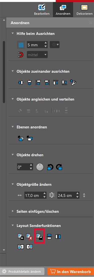 Einfacher wäre es sicher gewesen je ein Icon für linke Seite und rechte Seite zu wählen! Aber das ist nun mal CEWE, einen Wunsch auf Änderung zu äußern halte ich erfahrungsgemäß als sinnlos.