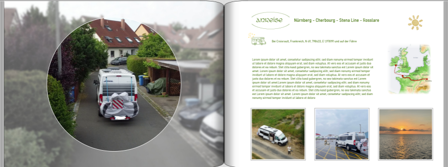 deine Gestaltung gefällt mir sehr gut. Ein paar Kleinigkeiten möchte ich dennoch anmerken. Die Stele des Wild Atlantic Way würde ich vermutlich als Bild einfügen und dieses mit Transparenz und einem Verlauf versehen. Auf den Einführungsseiten hast du jeweils die gesamte Karte von Irland eingefügt. Auf den Screenshots ist nur schwer zu erkennen, in welcher Region sich der Tag abspielt. Vielleicht ist das im Original besser zu sehen. Ansonsten würde ich vermutlich noch ein Clipart aus den Landkartensymbolen platzieren oder nur einen Ausschnitt der Karte verwenden. Was die Texte betrifft, so würde ich Asiafan zustimmen und diesen tatsächlich in zwei Spalten aufteilen, 14 cm finde ich schon ziemlich breit. Ich würde die unteren Bilder etwas vergrößern, damit den Abstand zwischen den Bildern verkleinern und die Textboxen in der Breite der Bilder gestalten. Wettersymbole habe ich auch schon häufiger verwendet. Ich habe sie mir aus dem Internet heruntergeladen. Allerdings sind sie grafisch gestaltet und nicht aquarelliert. Möglicherweise kann man da aber auch etwas mit den blauen Wölkchen kombinieren. Ich freue mich auf weitere Beispiele. Liebe Grüße Traumfänger Re: Fotobuch IrlandHallo zusammen,