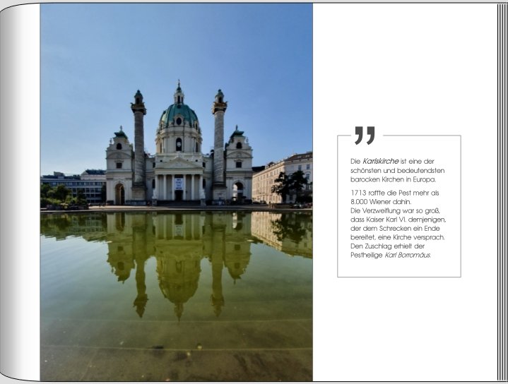 Ich stelle gerne mal ein Foto alleine auf eine Seite. Aus meiner Sicht ist es wichtig, dass das Foto immer der Hauptdarsteller bleibt. Alles andere ist wie immer Geschmackssache. Hier ein kleiner Auszug aus meinen Fotobüchern: 1. Foto als Hintergrund Da auf der rechten Seite viel Text steht, habe ich dem Foto links eine ganze Seite gewidmet. Außerdem wird die Brücke so durch nichts begrenzt. Hier ergänzt die kunstvolle Schrift (DK Rat Invested Mailbox ) das Foto. Auf der rechten Seite sind thematisch passende Fotos zu dem Foto auf der linken Seite. Zusammengehalten wird alles durch den blauen Querbalken, der der Farbe der Fotos angepasst ist. Hier wirkt die Seite durch die rote Farbe der Telefonzelle. Da braucht es keine weiteren Rahmen- oder Deko-Elemente. Ein schmaler Farbrand in dunkelgrau lässt das Foto wie ein kleines Gemälde wirken. Das grau-blaue Quadrat zieht sich als Deko-Element durch das ganze Fotobuch. Hier mit Beschriftung in Ergänzung zu einem einseitigen Foto. Hier liegt das Quadrat zum größten Teil hinter dem Foto. Es „erdet“ das zum Himmel zeigende Motiv. Hier wurde dasselbe Motiv aus 2 unterschiedlichen Blickwinkeln fotografiert. Durch die Anordnung hoch und quer kommt Spannung rein. Hier wird der Text durch eine Rahmen-Box vom Foto getrennt. Die „Gänsefüßchen“ sind als grafisches Element dabei. Hier ist das Foto durch mehrere Elemente angereichert: Verlaufs-Rahmen, Überschrift, Textbox und Streifen mit Metallic-Effekt passen zu dem Wiener Flair. Das Foto bekommt hier viel weißen Freiraum. Es hat einen CEWE Verlaufs-Rahmen. Das Foto ist oben, rechts und unten über den Fotobuchrand gezogen. Im freien Raum links steht die Beschriftung Der Verlaufs-Rahmen ist eine gute Ergänzung zu dem „wilden“ Motiv. Die unterschiedliche Aufbereitung der Seiten lassen keine Monotonie aufkommen. Hier verbindet der dunkelgraue Streifen die Motive. phili Re: Ein Foto schön in Szene gesetzt@phili: