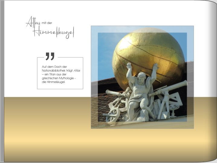Die verspiegelten Kugeln sollen Licht in den dunklen Innenhof bringen. In einem zweiten Innenhof wurden zum selben Zweck die Fenster mit schrägen Messingflächen umrahmt. Re: Ein Foto schön in Szene gesetztDie einfachste und auch dezente Art ein Foto auf einer Seite etwas anzureichern ist das Setzen eines Farbrands um das Foto.
