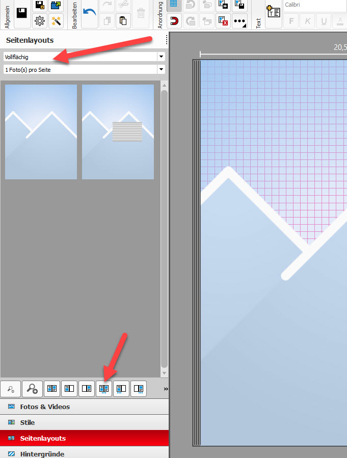 Ich habe das Flag in den Einstellung NICHT angehakt. Dann beginne ich wieder mit einem ganz neuen Buch (groß panorama - digital std - harcover. Ich gehe auf die erste Innenseite, setzte Vollflächig und kopiere ein vollflächiges ein-Seiten Layout auf die linke Seite und auf die rechte Seite. Dann kopiere ich die Doppelseite auf alle folgenden leeren Seiten. Und beim Weiterblättern springt es wieder auf großflächig. Obwohl rein optisch jetzt überall ein vollflächiger Platzhalter auf jeder Seite liegt. Re: Großflächig kontra VollflächigHallo,