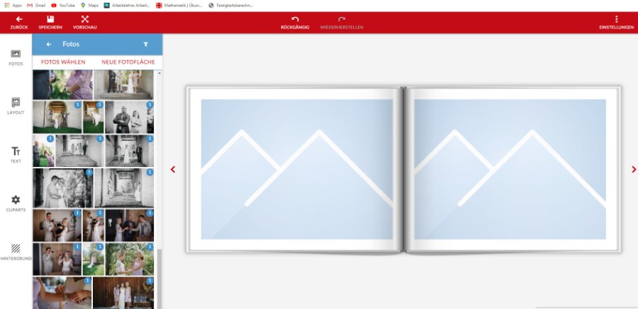 Nur leider sieht mein CEWE Gestaltungsfenster ganz anders aus. Ich glaube, das liegt daran, dass ich in der Browser-Version gestalte und nicht in der Software.