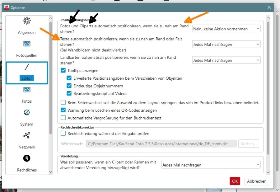 zum Problem Layout: Wenn Du ein CEWE-Layout auf eine Seite ziehst, wirkt sich das nur auf die Anordnung und Größenverhältnisse Deiner Bilder aus, nicht aber auf Einstellungen, die Du im Reiter Dekorieren zuvor vorgenommen hast. Wenn Deine Bilder also bereits mit Farbrand, Eckenfunktion bzw. Schatten oder Transparenz gestaltet wurden, bleiben diese Einstellungen erhalten, auch wenn Du ein neues Layout darüber legst. Dieses Verhalten ist gewollt, da davon auszugehen ist, dass der Nutzer Dekorationen auch tatsächlich behalten möchte, selbst wenn die Bilder anders angeordnet werden. Ich nehme daher an, dass Du Eckenfunktion und Farbrand zuvor genutzt hast? Wenn Die Bilder nicht rund, sondern eckig sein sollen, müsstest Du die Bilder einmal komplett markieren und das Häkchen bei der Eckenfunktion deaktivieren. Dann sind die runden Ecken verschwunden. Eine Ausnahme sind hier die Layouts der Kategorie Kreise. Hier werden bei Verwendung dieser Layouts immer Kreise gestaltet, egal welche eigene Dekoration Du zuvor vorgenommen hast. Zur Problematik Falz: Den immer wiederkehrenden Warnhinweis zum Falz, ohne dass man Verschieben oder Liegenlassen tatsächlich veranlassen konnte, hatte ich auch schon. Das Verhalten ließ sich jedoch nicht bewusst reproduzieren, um festzustellen, was das "Fehlverhalten" auslöst. Hier hilft ggf. nur speichern und schließen der Anwendung sowie anschließender Neuaufruf von Anwendung und Projekt. Dann sollte der Warnhinweis wieder zu beantworten sein wie vorgesehen. Wenn Dich der Falz-Hinweis grundsätzlich "nervt", kannst Du ihn über Optionen --> Editor ausstellen ("Nein, keine Aktion vornehmen.") Bitte beachte jedoch, dass momentan die Warnung zum Falz und zum Seitenrand miteinander verbunden sind. Schaltest Du den Warnhinweis zum Falz also aus, schaltest Du ihn gleichzeitig auch für den Rand mit aus. Das Thema ist grundsätzlich bereits bei CEWE in Arbeit und soll mit der nächsten Version (7.4 ?) verändert angeboten werden, siehe hier. Liebe Grüße