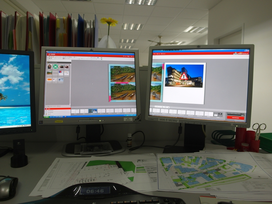 meines Wissens, ist duale Darstellung der Vorschau nicht möglich. Ich frage Montag aber gerne noch einmal genauer nach. Sylke Re: Vollbildmodus über 2 MonitoreDu brauchst das Fenster einfach nur über die zwei Bildschirme ziehen, aber viel bringt es nicht. Wie man hier sieht, verbreitert sich nur der graue Bereich links und rechts vom Buch, hab es allerdings nicht mit einem Panoramabuch probiert. Nur der Bereich mit den Fotos, Hintergründen, etc läßt sich verbreitern und das könnte hilfreich sein. Leider lassen sich die anderen Felder nicht abdocken, dies wäre aber ein großer Vorteil. Bei AutoCAD habe ich am linken Bildschirm meine Zeichnung und am rechten alle meine Symbole und Befehle.