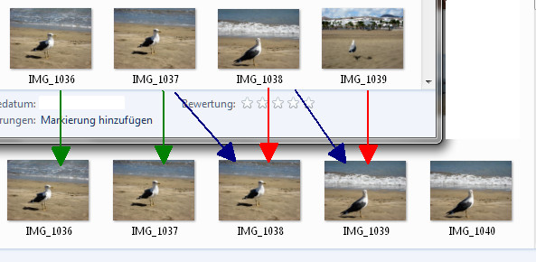 Grün: gleiches Bild, gleicher Name Blau: gleiches Bild, unterschiedlicher Name Rot: unterschiedliches Bild, gleicher Name - mir wird schwindelig :roll: Oben Originaldateien, unten aus "mcf-Dateien"-Ordner liebe Grüße